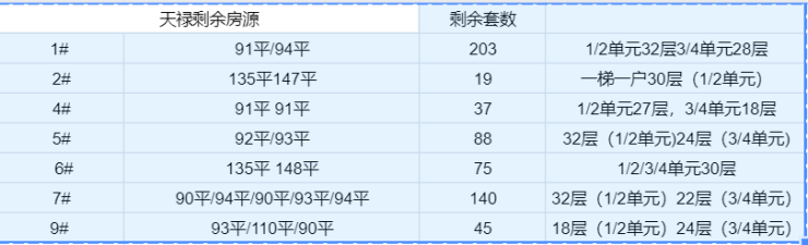 在售信息:在售楼栋:1号楼 2号楼 4号楼 5号楼 6号楼 7号楼 9号楼 在售面积:91㎡ 94㎡ 113㎡ 135㎡ 147㎡毛坯 91/94均价:7300