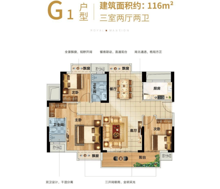 高层(6700元/㎡):约107㎡(三房)、116㎡(三房)、124㎡(四房)、128㎡(四房)