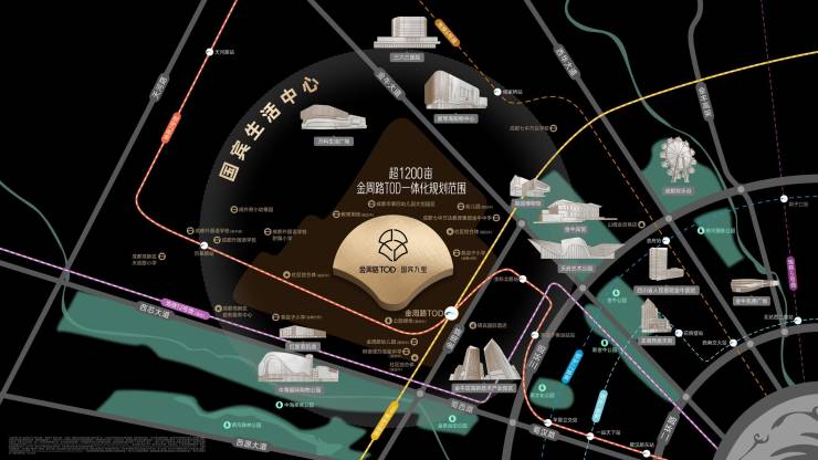 金周路TOD——金牛区重点打造的超1200亩组团级站点TOD项目,位于国宾核芯板块,结合“轨畔城心,乐活绿里"项目定位,打造高端生态活力住区+邻里悦活服务中心,塑造城园相融的有机城市生活新范本。2022年7月,金周路TOD一体化城市设计区域调规,千亩TOD辐射带动区域能级跃升,国宾板块自此迭新。