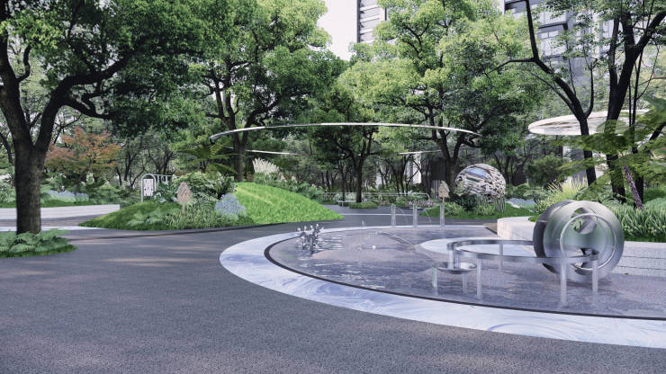 延续建筑的现代雅奢风格,营造简洁大气、时尚的景观空间。7型建筑布局,形成东西-南北两大景观轴线,宅间形成多个集中的花园空间序列;育树引林,自然复兴,依托原生树打造七组植物花园:七组植物,七重空间感受,四季有绿;七重时间花园院落、两条活力环道,打造新成都花园院落。