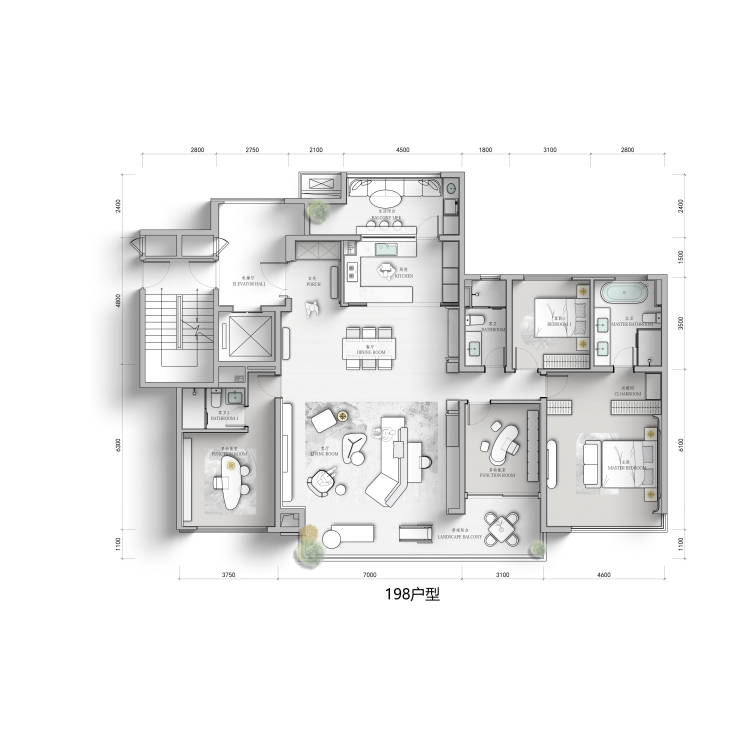 高低错落地排布于静谧的园林中,多一方阳台设计使南北皆享四季景观趣味;超大面宽的方 / 横厅设计与LDKG一体化设计,让室内外空间更通透,家庭成员互动更密切,营造出温馨的家庭氛围。