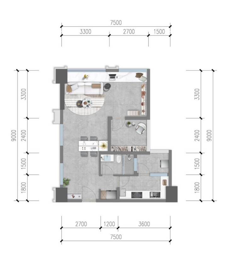 A1-2户型丨约57㎡灵动空间