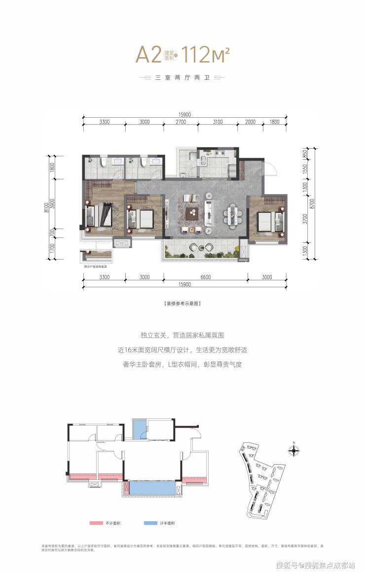 建面:103m²、112m²、118m²(套三双卫)