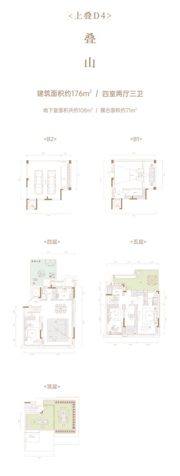 天地合院、建筑面积约176㎡-216㎡
