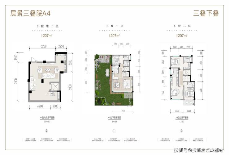 • 下叠:207-260㎡(670-1000万),配置30-160㎡私家庭院