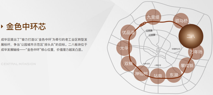 主干道路:三纵(中环/二环/三环)+三横(蜀龙路/成华大道/府青路)