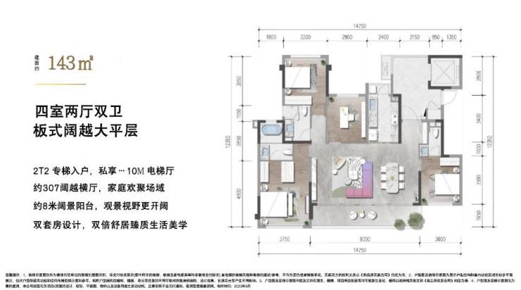 11号楼:143㎡ 2T2 南北通透 17层
