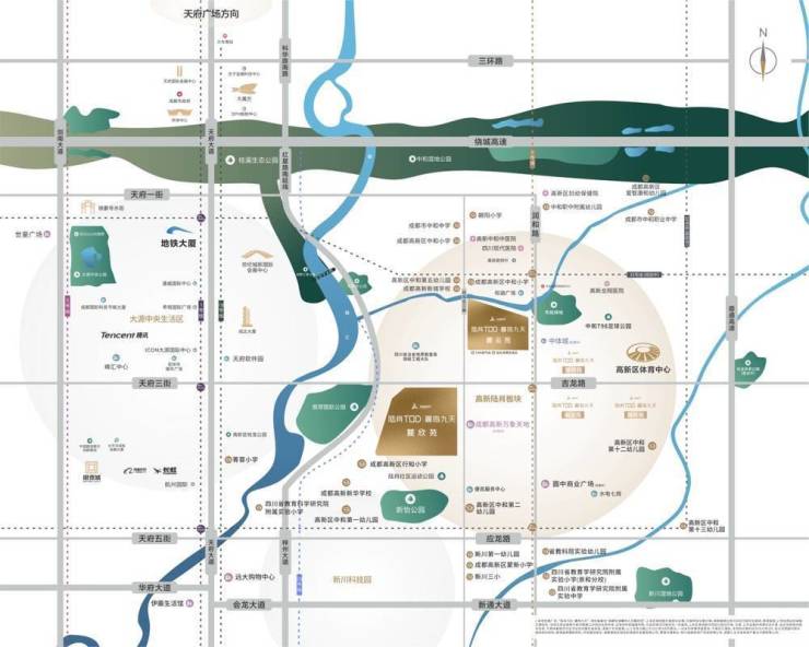 立体交通 地铁6号线与规划中的22号线双轨交汇,配合梓州大道、天府大道等城市主干道,构建"轨道+公交+步行"的立体交通网络,实现全城高效通达。