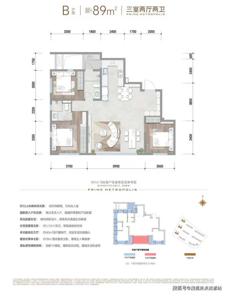 89㎡(2T4户,得房率约30%)