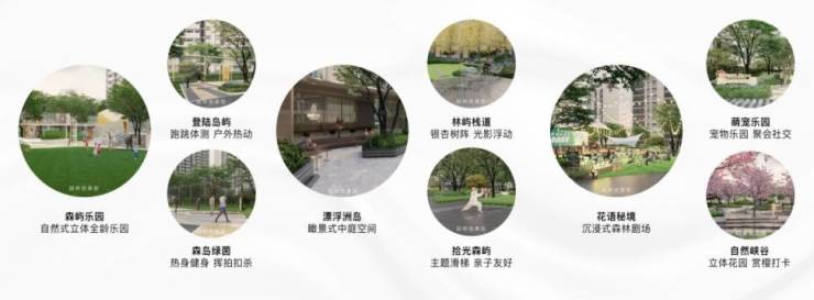 【东南亚度假园林】:约800m有氧能量环,约900㎡儿童活动区,九大度假风花园,沉浸式“岛居”生活