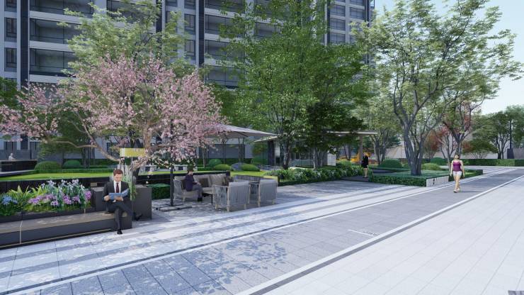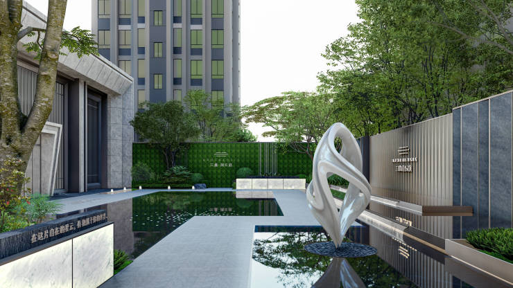 在园林设计上秉承「 简与雅」、「奢与享」的理念,景观设计采用东方极简的设计手法,塑造优雅的人居空间;通过多重漫步归家体验、五大全龄生活场景,体现居者的优雅生活境界;利用丰富且健康的社区配套场景,塑造了活力与交流相融的共享社区。实体样板间