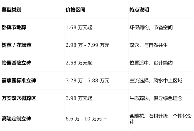 【万福净土陵园】价格参考
