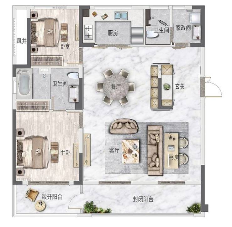 适老空间可变为无障碍空间,安享晚年生活主卧套间舒适空间,尽享尊贵生活,餐客一体超大空间洄游空间主客动线分离,整体空间更显开阔南向三开间270°观景体验,舒适美观