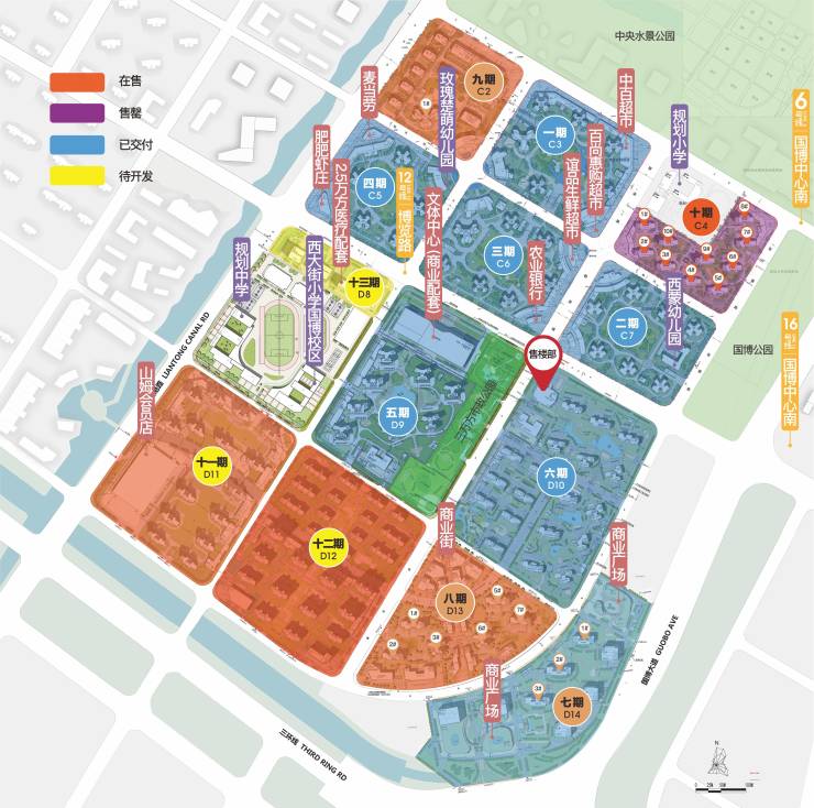 12期D12地块位于国博城核心,净用地面积约10万方,总建面约29.9万方,计容建面约22万方,其中住宅建面约20.7万方,容积率约2.16,绿地率约30%,商街为邻,公园为伍,学府为伴,12期高层位于地块南区,以媲美别墅级别的居住品质,再掀人居热潮。