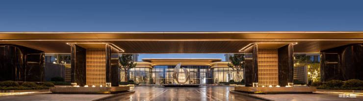【酒店式迎宾落客】入口有凤来仪雕塑,染井吉野迎宾树阵,流畅回车线环绕其间