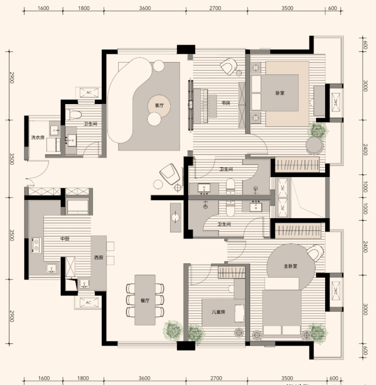 套四(改善大宅):建面约 144-161㎡,大面宽大阳台,带独立书房/衣帽间,适合多孩家庭或三代同堂。