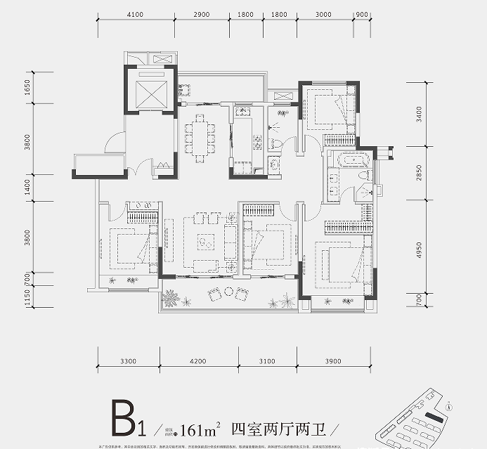 小高层户型:建面约161㎡