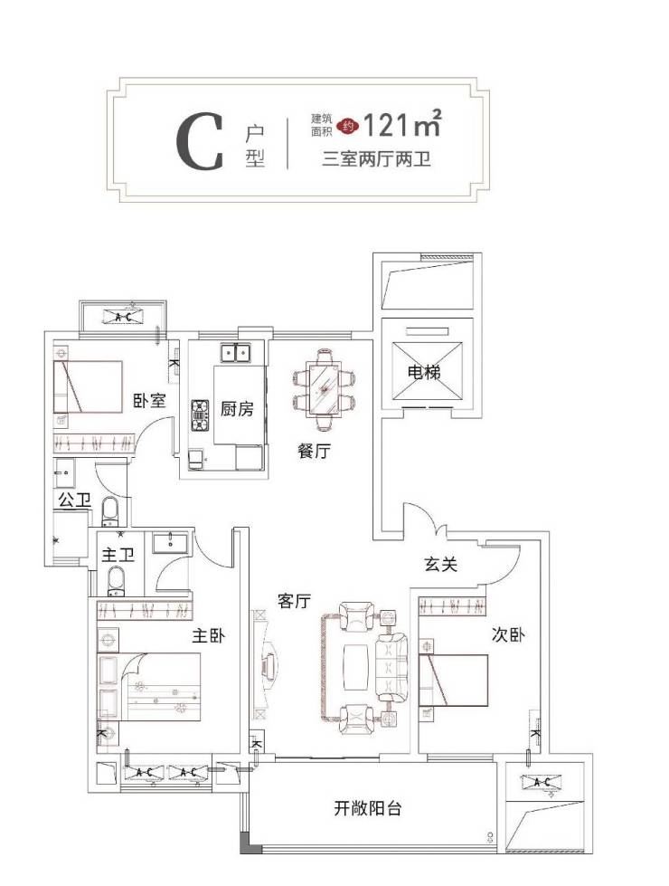121㎡-130㎡三房两厅两卫