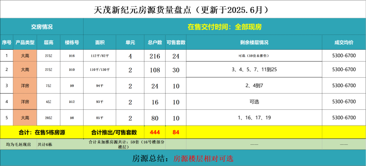 房源在售情况(房源为动态数据,详情请联系售楼处)
