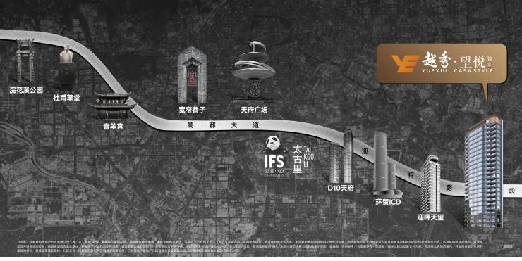作为成都传统豪宅轴线的新晋作品,项目填补了三环内高端改善市场的空白。这条以天府广场为原点的东西向轴线,串联了成都最具代表性的高端住区,从浣花溪到D10,形成独特的城市豪宅基因链。