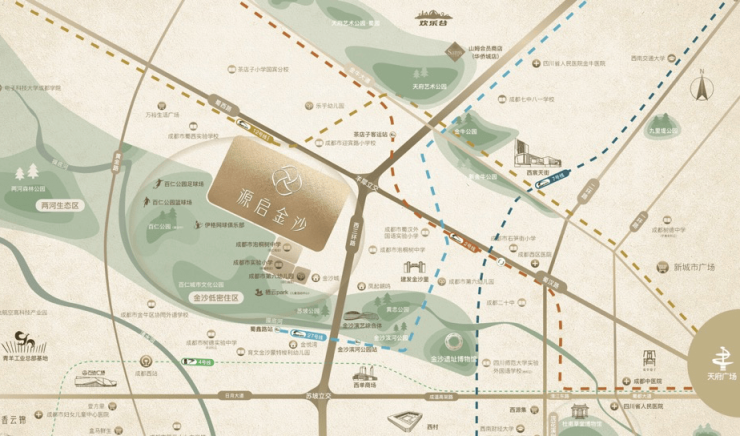 生态资源| 坐拥百仁公园、苏坡公园、金沙滨河公园、黄忠公园及金沙遗址博物馆等绿色空间