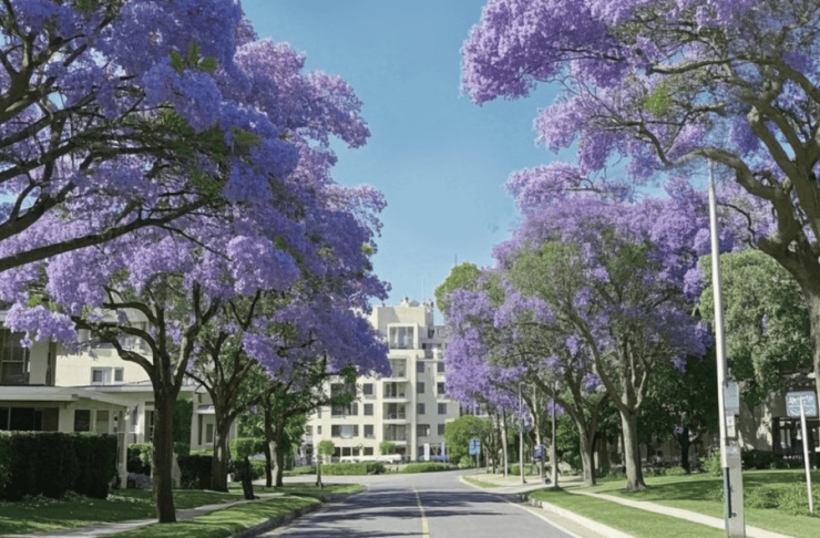 创新打造开放式宋韵园林,通过蓝花楹大道、银杏树阵、生态水巷等景观节点,营造"穿林踏影"、"清泉枕梦"的诗意栖居体验。