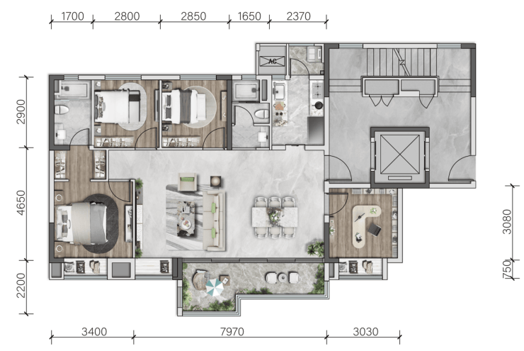 ,还有126㎡的四室两厅两卫户型