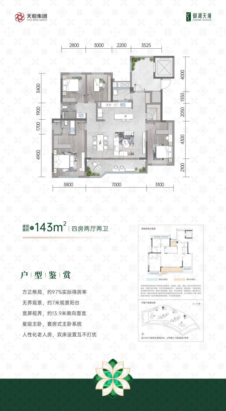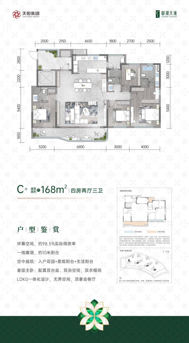 天恒御湖天境落子成华区北湖板块,由北京西城区国资委直属国企「天恒置业」开发,打造建面约143-196㎡一线瞰湖精装大平层。项目以