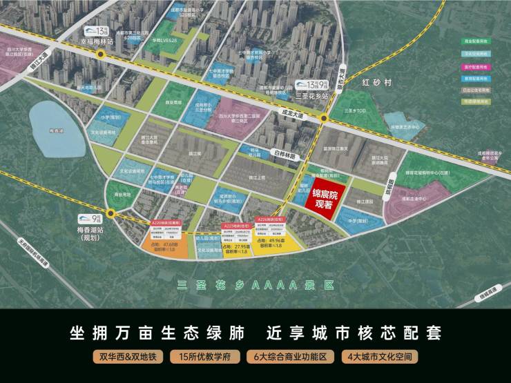 ,扼守主城 3.5 环黄金区位,上承金融城、东大街繁华脉络,下接白鹭湾新经济活力区,是锦江主城罕见的成熟低密改善板块。项目占地约