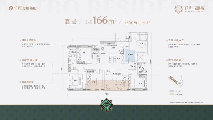 ▎产 品建面为139、166、175㎡四房精装大宅