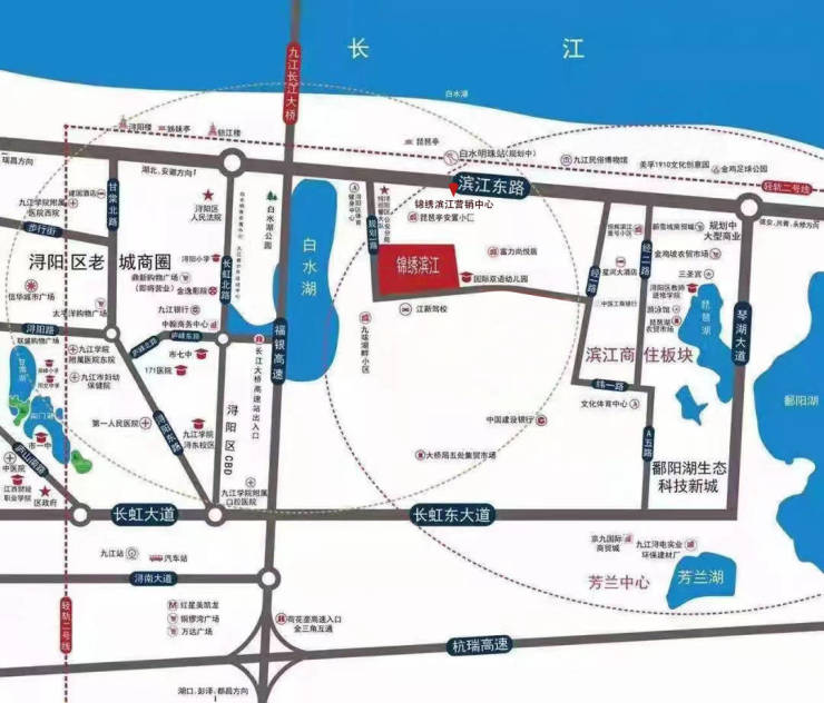 交通配套:往西6分钟左右直达大中大、四码头及九龙商圈,往东开车15分钟可到城东生态科技城科创中心。往南车行8分钟可直达九江火车站、新长途汽车站及环城快速路、福银高速,15分钟可通达九江各个区域。此外项目门口滨江路上设有公交站点5、23、502、59、60等公交车。