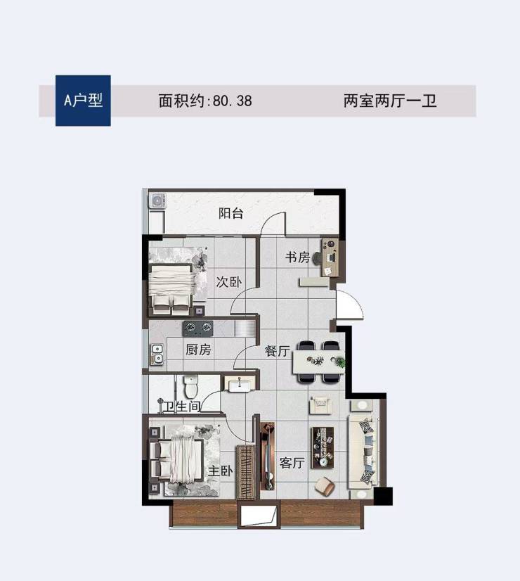 在售户型:约80.38㎡、77.59㎡,88.02㎡、85.42㎡