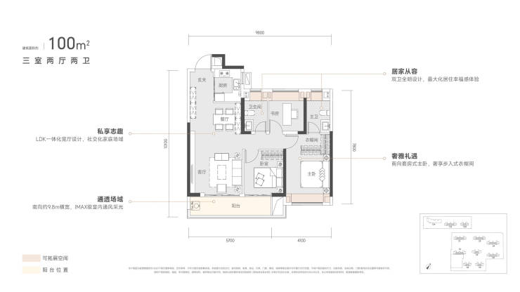 约88%得房率|南向9.8m横宽|LDK一体化|套房式主卧