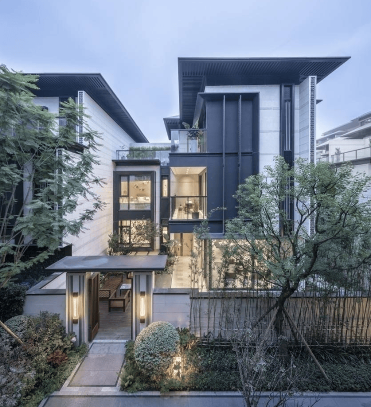项目采用新中式府院建筑美学,深灰与米白立面搭配挑檐设计,融合东方礼制与现代极简,质感厚重、历久弥新。内享中式礼制园林、五重归家礼序、全冠移植绿植、私属庭院秘境,外接武侯新城产业高地、双凤桥 TOD 繁华、全维顶配配套,形成 “内藏低密私园、外揽城芯繁华、私属纯粹圈层、主城绝版土地” 的四重稀缺格局,武侯新城纯墅区价值无可复制。