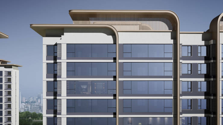 定制“云”字型双层飘檐造型超大窗墙比宽幕玻璃局部铝板造型组合硅酸钙保温一体板轻质高强、防火隔热、保温耐潮