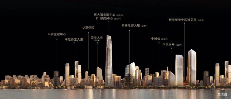 新希望华中区域总部(在建中)、周大福金融中心(在建中)、中信泰富、中诚信(在建中)等世界500强企业盛汇于此,奏响长江的资本强音。