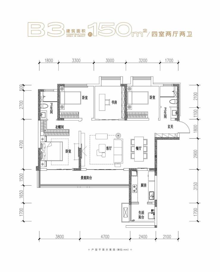 B1 、B3建筑面积约150㎡ 四室两厅两卫
