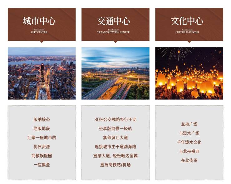项目地处西双版纳最核心版纳泼水广场旁,拥有一线江景,与告庄对望。周边拥有大润发、沃尔玛、江边夜市、白象沙滩以及高尔夫球场等众多成熟商业配套。未来规划轨道交通从项目穿江而过直达告庄。 项目自身规划5.6万方轻奢商业,2.5万方城市广场,以及超星级地标酒店,项目致力于开发为版纳标杆豪宅产品。