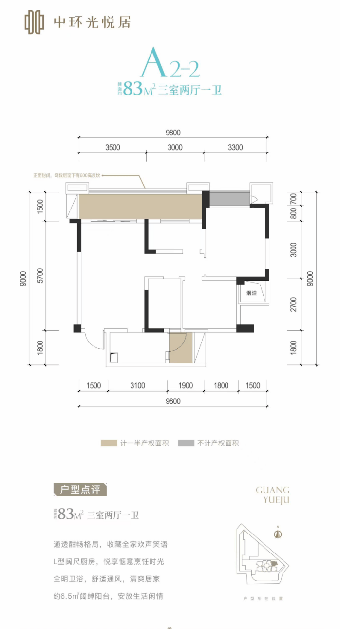 【项目基础信息】项目名称:中环光悦居,开发商:四川省物流产业股份有限公司,项目位置:四川省成都市成华区二仙桥东路60号,容积率:4.5,绿化率:20%,公摊:20%(赠送10%左右,得房率90%),车位数:365个,占地面积:10.58亩,梯户比:住宅3T8户,办公3T10户,总户数:住宅192户,办公80户,物业费:高层2.8元,办公4.2元,交房时间:2023年9月30日,产权年限:住宅70年,办公40年,物业公司:保利物业,产品面积段:62-73-83-91㎡,单价:2.1万左右