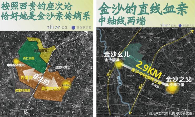 金泽路——蜀江路为轴的金沙正脉,自金沙遗址始,串联燕沙庭院、雍锦园、金悦湾、凤起朝鸣等传世奢宅环伺两侧。