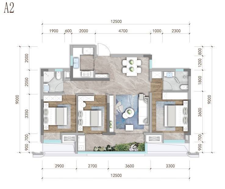 双阳台配置 / 约7.2米宽幕景观阳台,带独立生活阳台