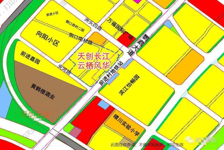 天创长江云栖风华位于汉阳区鹦鹉大道与向阳西路交叉口以北,倒口南村地块,与二环线直线距离约2.1公里,与杨泗港快速通道直线距离约400米,紧邻地铁6号线前进村站(约15米),与长江直线距离约700米,属于2.5环以内的汉阳核心板块。