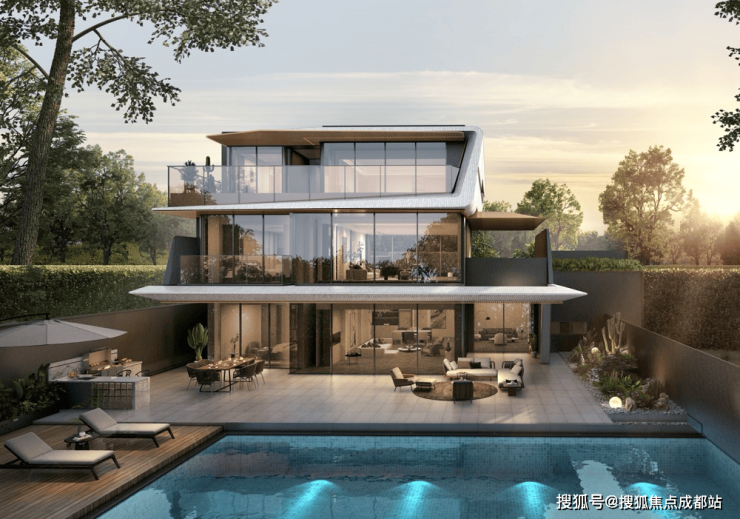 现代主义建筑风格,约16米奢阔面宽,全景落地观景窗,飞檐式屋顶设计,立体花园体系,全套房配置,独立归家动线;
