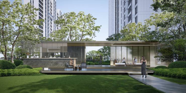 ③三进洄游前庭,途经过真贵树木,搭配潺潺水景,把外面的烟火气巧妙过渡到静谧无扰的社区里,一键切换归家模式。