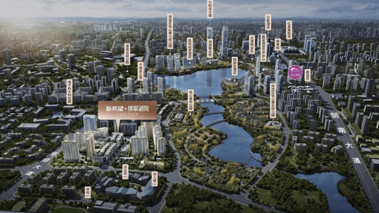 新希望锦粼湖院雄踞怡心湖 C 区核心板块,扼守华府大道发展主轴,东连天府新区、西接双流主城、北邻大源金融城,承接城南高端改善外溢需求,是城南公认的湖居生态价值高地。区域作为成都临空经济示范区核心宜居板块,汇聚高端产业、生态文旅、城市配套于一体,板块发展潜力与宜居属性双重领跑。