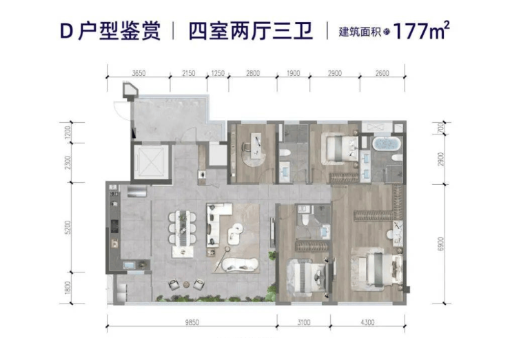 建面约177㎡瑰丽奢装大平层,双套房设计,约9.85米IMAX级宽幕阳台,约2000米无界视野,采用全球豪奢瑰丽酒店的设计灵感,配备了一线品牌顶尖选品,极致的细节营造,也是儫宅气质彰显。