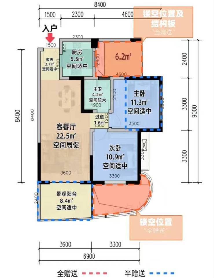适合刚需及单身置业,紧凑布局兼顾功能,赠送面积提升空间利用率,总价门槛低。