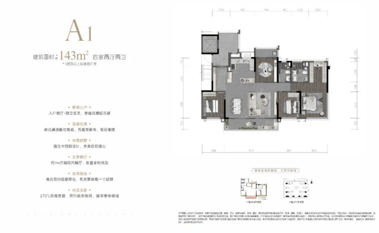 建面约143㎡四室两厅两卫