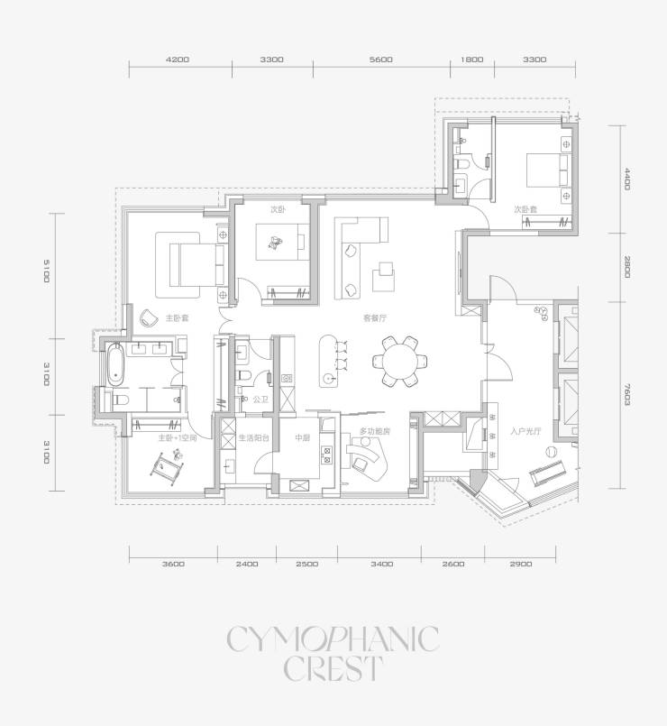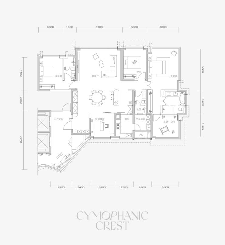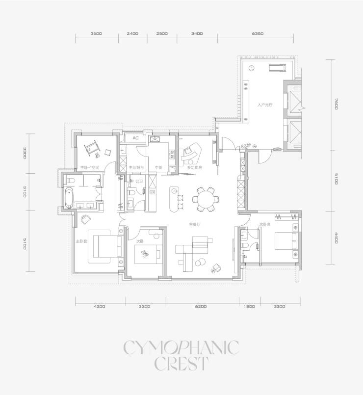 A1 3室3厅3卫+1多功能房间 210㎡
