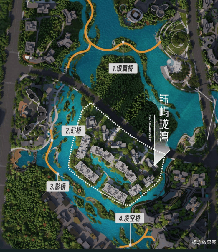 中央湖心区,360°环水双湾